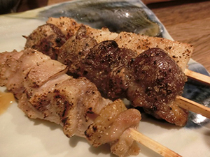 薩摩揚げをアテに霧島をジョカでいただきます。 店員さんから「(黒ジョカは)あんまり熱くなりすぎない方がイイですよ」って言われました。 九州は鶏肉っていうイメージが強いもので、「みっせ鶏の三種盛り」というのを注文しました。
