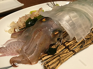ポテサラの 美味しい店に ハズレなし の法則は此処でも健在也。 そして、なにやらビックリしておられた後に、 チョッカイを出したりしておられるERI女史ですが、 それはメトロン星人の活き造りだったのであります。