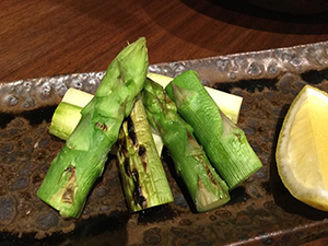福岡といえば、やはりゴマサバから、、、 そして烏賊焼売、これを今夜の白眉にあげる人が多かったわけです。 5月ですから、旬のアスパラも食べないと、、、 先ほどのメトロン星人の下足を焼いてもらいました。最高のアテですな、こりゃ。