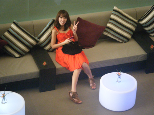 というわけで、写真はホテルのロビーで1人待つカオリさんです。
