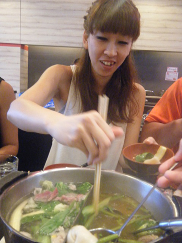 2槽に仕切られた鍋の左側がノーマル出汁、