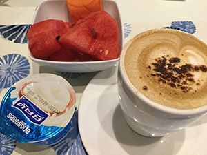 最後はヨーグルトとスイカとカプチーノで